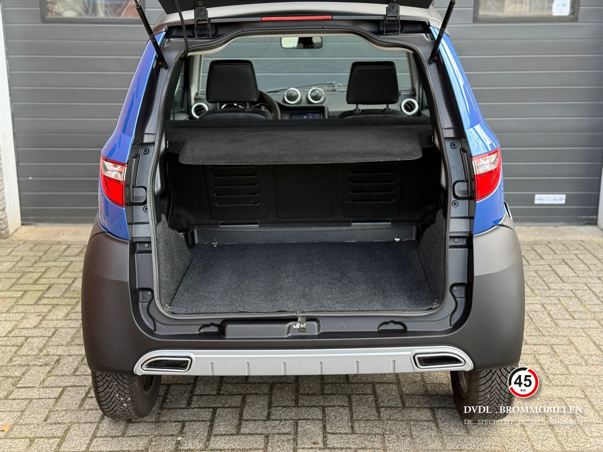 De brommobiel beschikt over een HOGE INSTAP EN ZIT en bied genoeg ruimte voor zowel de passagiers als voor de bagage met een grote drempelvrije laadruimte.