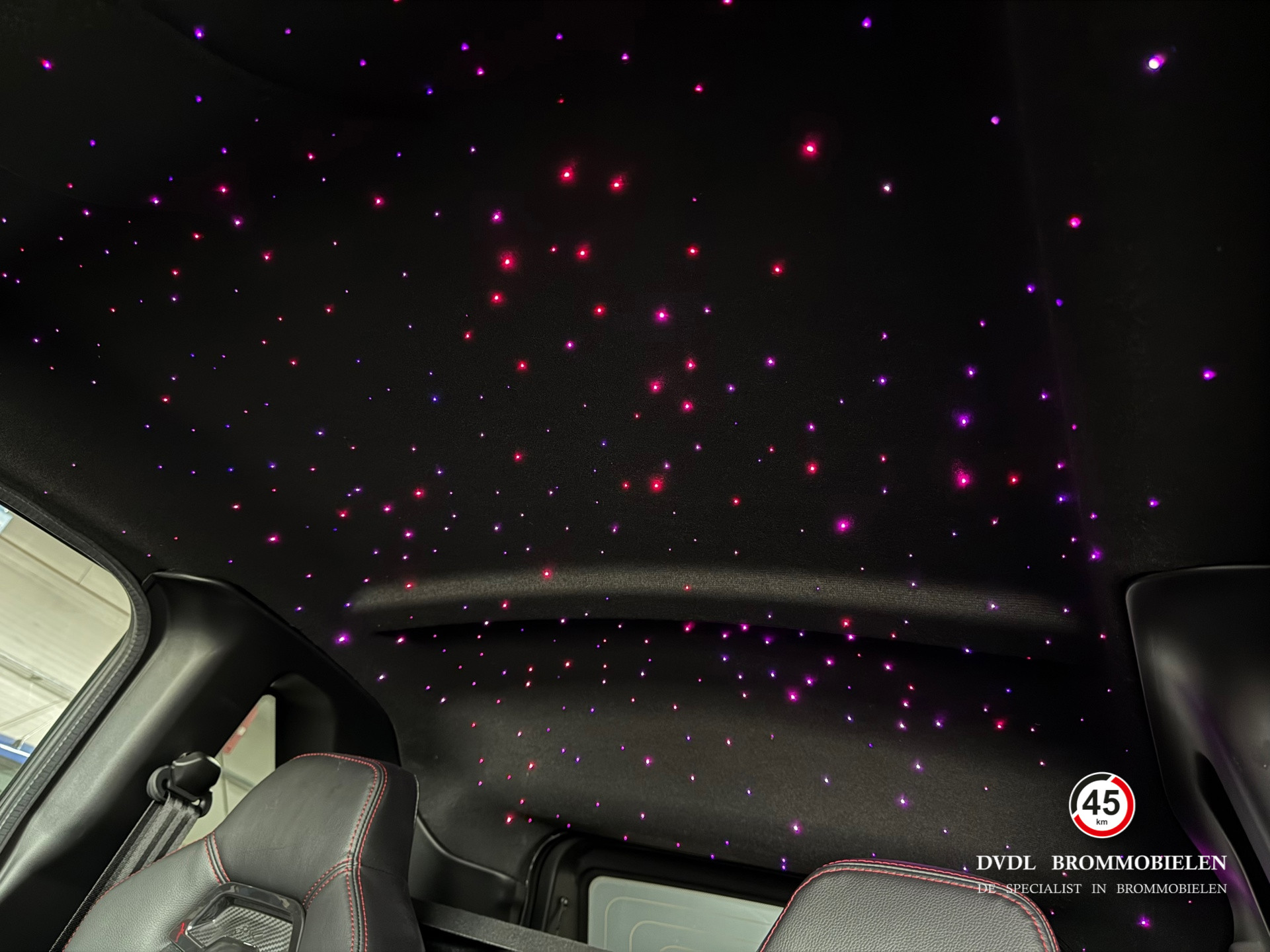 De meest complete brommobiel beschikbaar met tal van opties zoals sterrenhemel met instelbare kleuren, 10' multimedia scherm met Apple Carplay, airconditioning, stuurbekrachtiging, achteruitrijcamera, Pioneer audiosysteem, 16' lichtmetalen velgen, grotere spiegels, lederen sportstoelen met rode stiksels, ambient light dashboard en deuren, draadloze telefoon oplader, spiegels met richtingaanwijzer, etc.