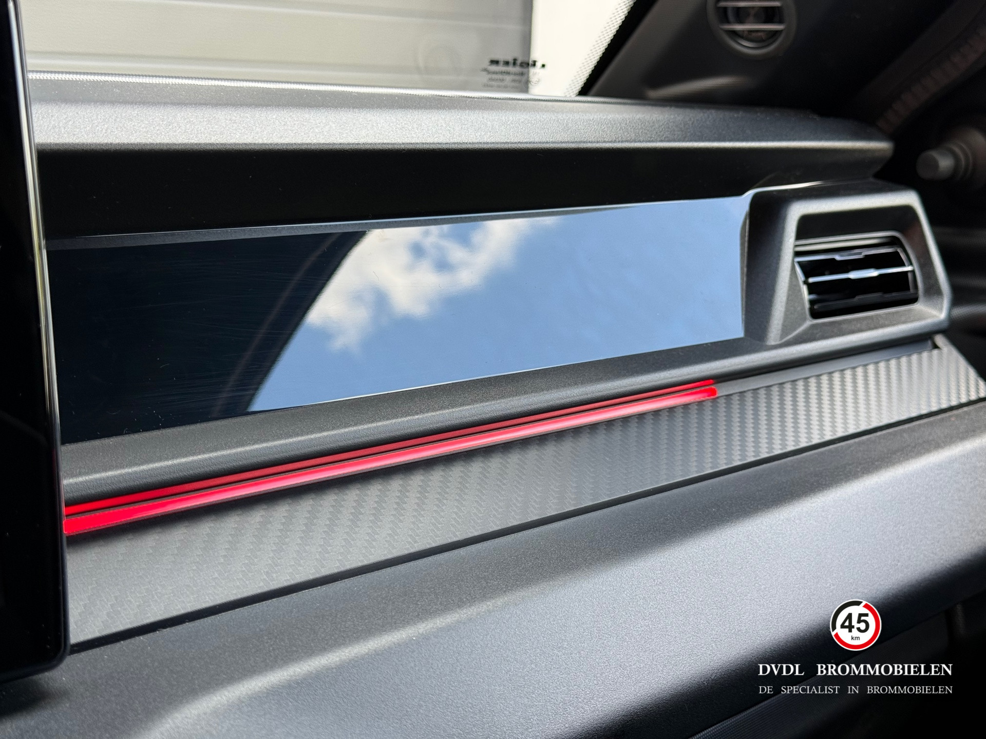 De meest complete brommobiel beschikbaar met tal van opties zoals 10' multimedia scherm met Apple Carplay, airconditioning, stuurbekrachtiging, achteruitrijcamera, Pioneer audiosysteem, 16' lichtmetalen velgen, grotere spiegels, lederen sportstoelen met rode stiksels, ambient light dashboard en deuren, draadloze telefoon oplader, etc.