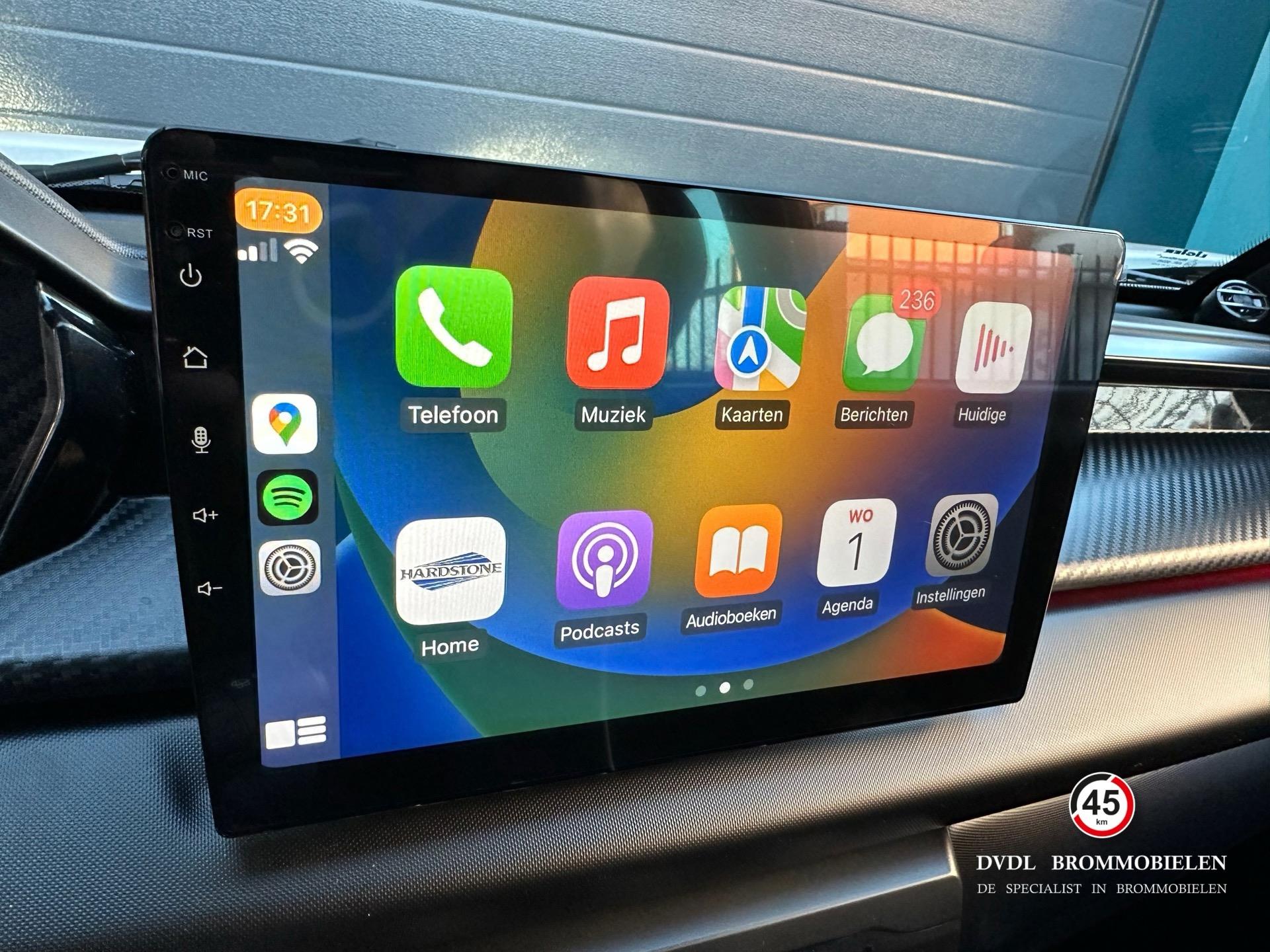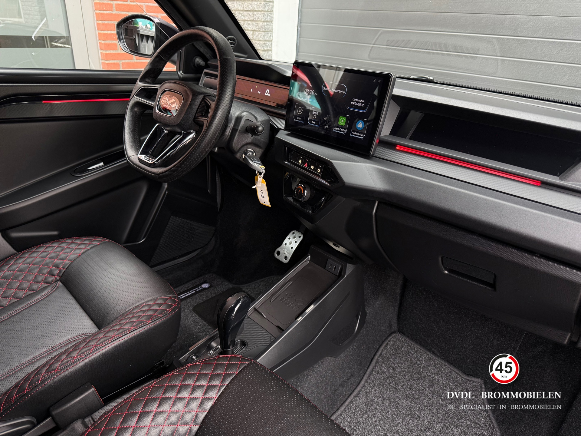 De meest complete brommobiel beschikbaar met tal van opties zoals sterrenhemel met instelbare kleuren, 10' multimedia scherm met Apple Carplay, airconditioning, stuurbekrachtiging, achteruitrijcamera, Pioneer audiosysteem, 16' lichtmetalen velgen, grotere spiegels, lederen sportstoelen met rode stiksels, ambient light dashboard en deuren, draadloze telefoon oplader, spiegels met richtingaanwijzer, etc.